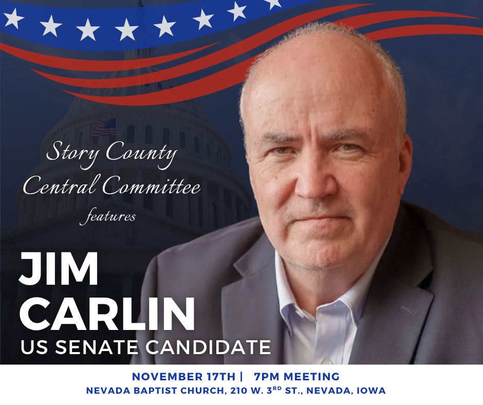 Please join Jim as he speaks with the Story County GOP Central Committee. There will be time before the event for one on one discussions with Jim.